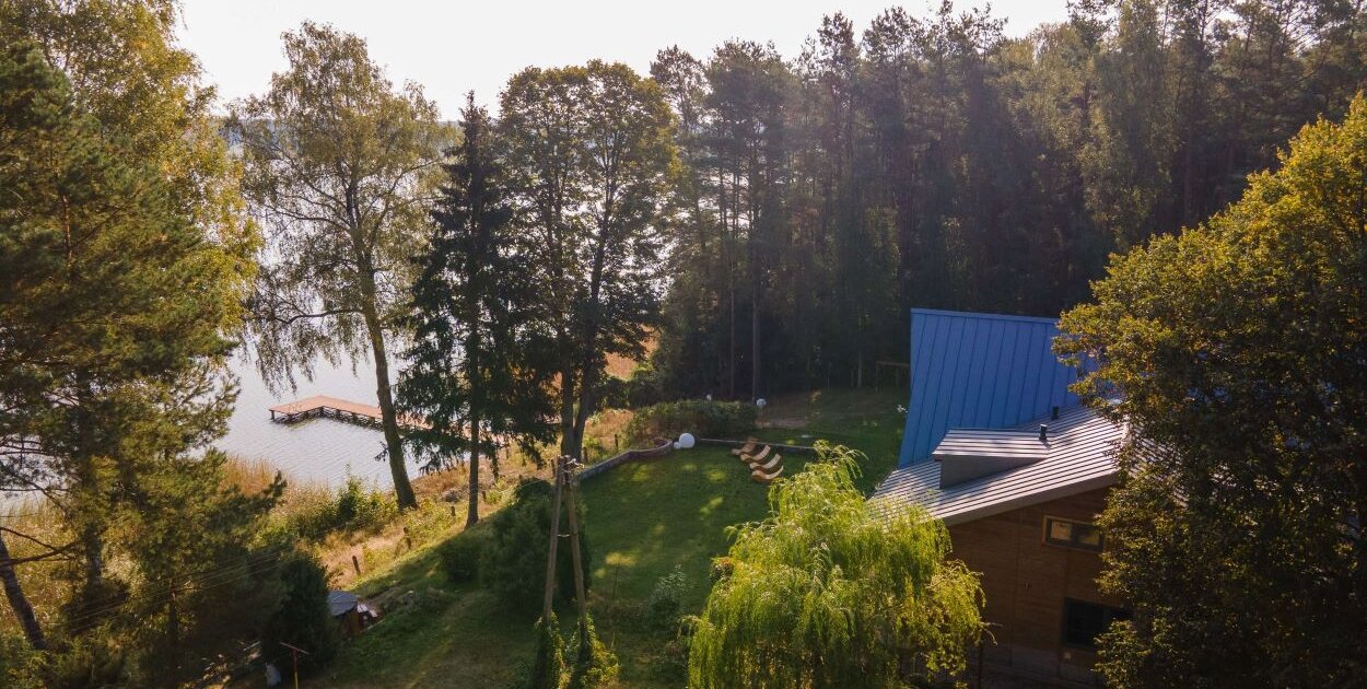 Lustro Wody to dom położony nad jeziorem Kałębie, z dala od dróg, miast i sztucznego światła. W promieniu wielu kilometrów nie ma nic, co zakłócałoby widok nieba.