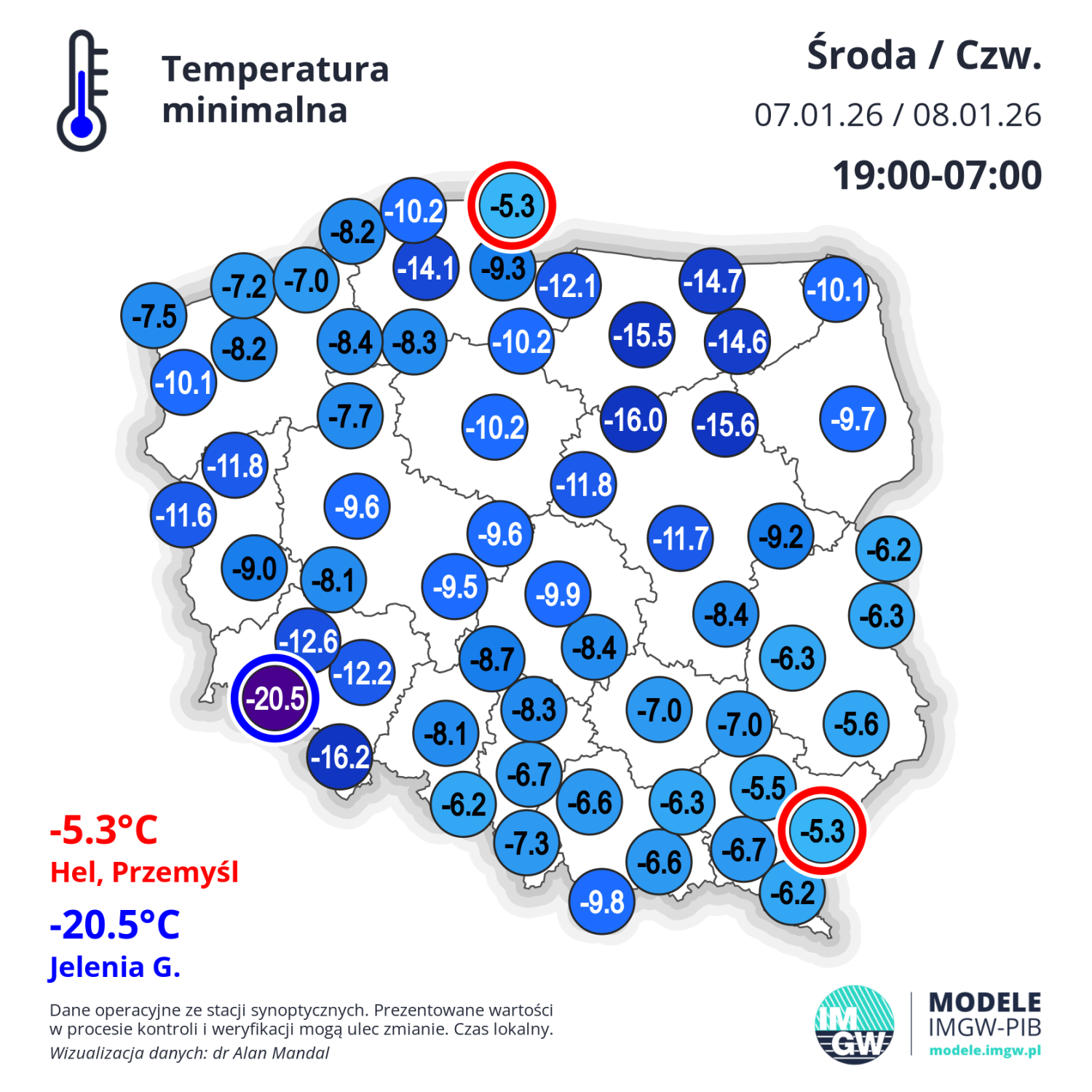 Temperatura powietrza na stacjach synoptycznych IMGW-PIB