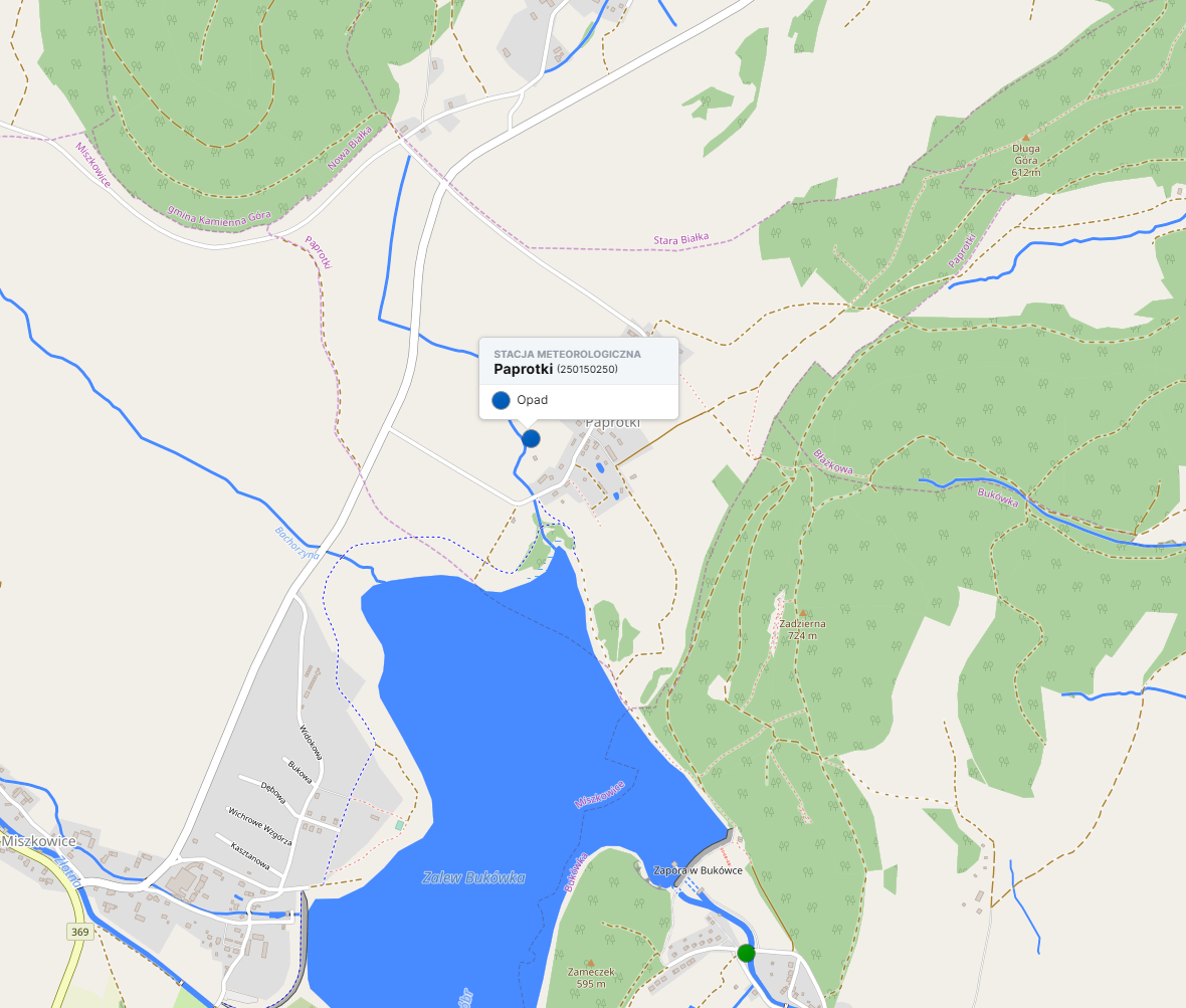 - Dodatkowo w pobliżu i na podobnej wysokości co stacja znajduje się zamarznięty Zalew Bukówka, nad którym powietrze jeszcze bardziej się wychładzało i zalegało uwięzione w najniższym punkcie terenu. Poniższa mapa - https://polska.e-mapa.net/