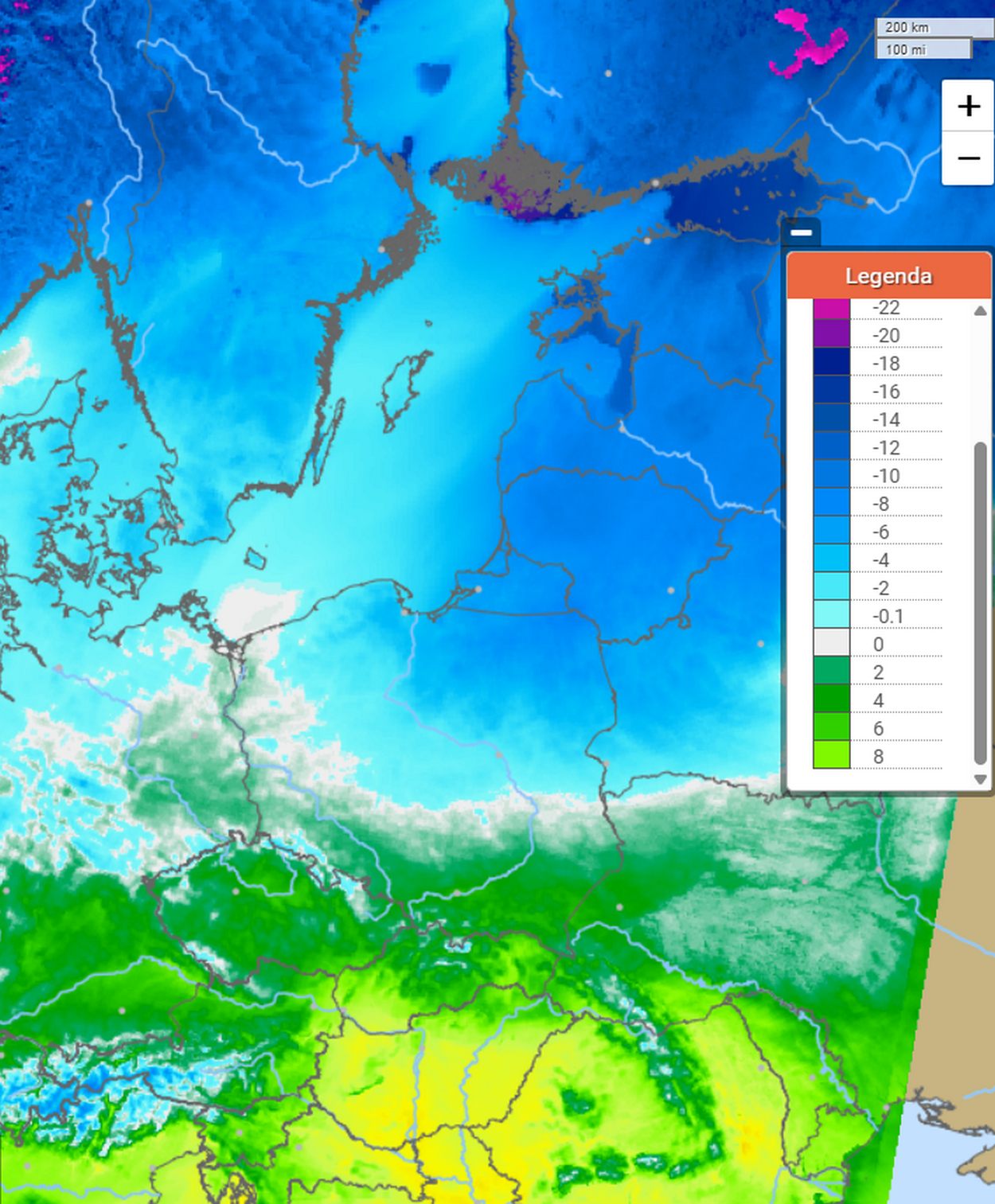 SkomentujMapa temperatury powietrza w sobotę w połowie dnia. Źródło mapy: meteo.pl