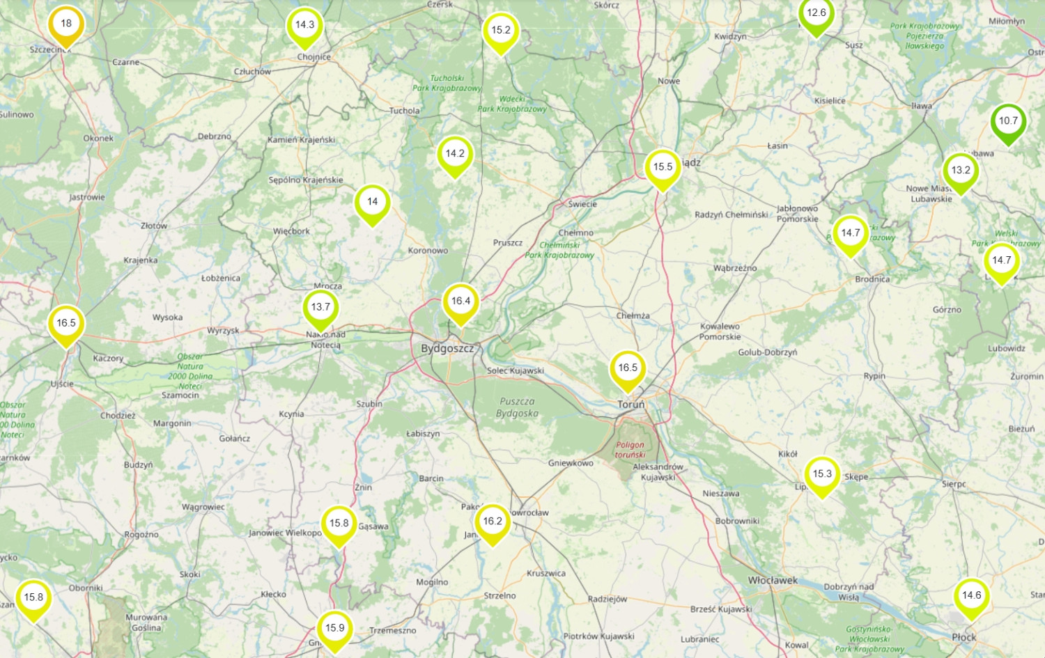W sobotę z południa dotarło ciepłe powietrze, a dodatkowo duże usłonecznienie sprawiło, że temperatura powietrza wzrosła w Toruniu i Bydgoszczy do 16,8 i 16,6 st. Niewiele zabrakło do wyrównania poprzedniego rekordu temperatury maksymalnej z 1990 roku (17,1 st.). Mimo to dzisiaj mieliśmy najcieplejszy dzień lutego od właśnie 1990 r. W niedzielę temperatura będzie już wyraźnie niższa (8/9 st.), ale i tak stosunkowo wysoka jak na 1 marca. W niedzielę rozpoczynamy meteorologiczną wiosnę, która potrwa do końca maja.