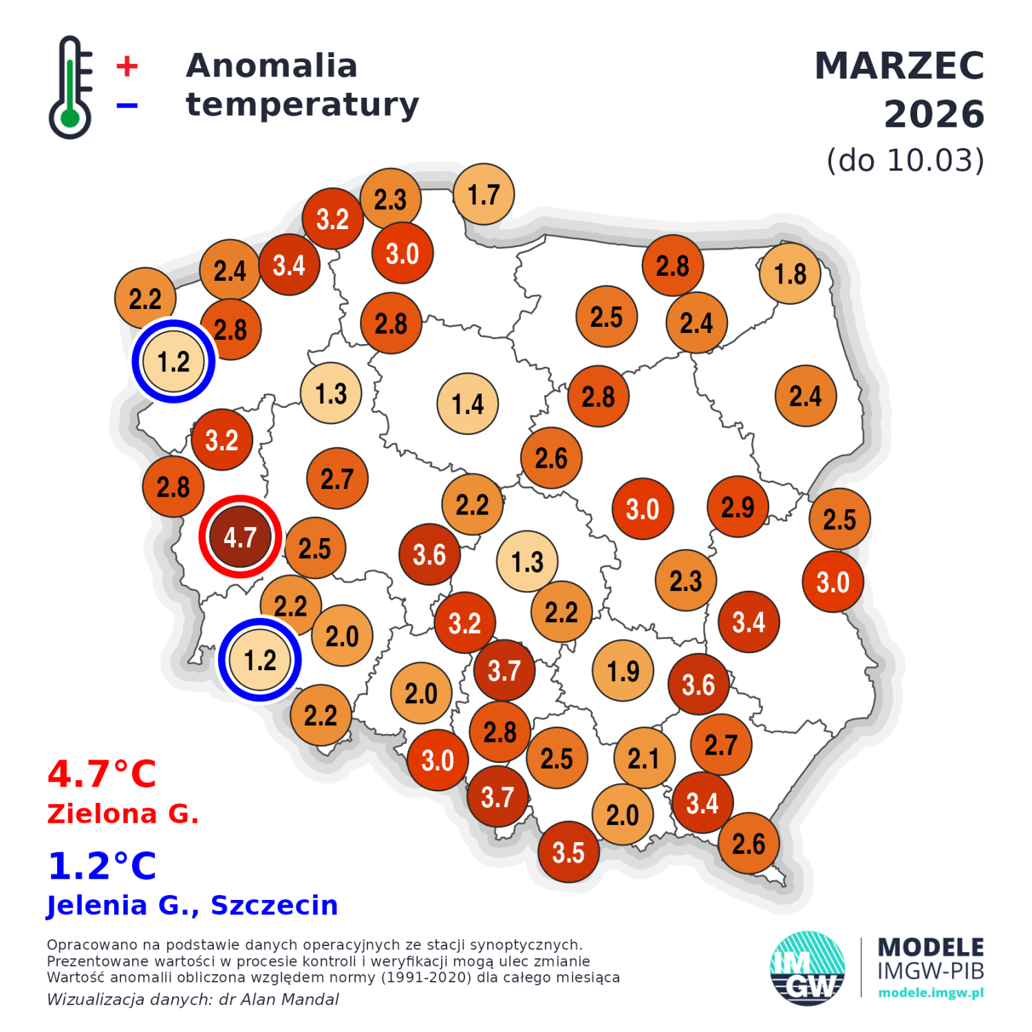 Marzec (do 10 dnia) cieplejszy od normy i bardzo suchy.