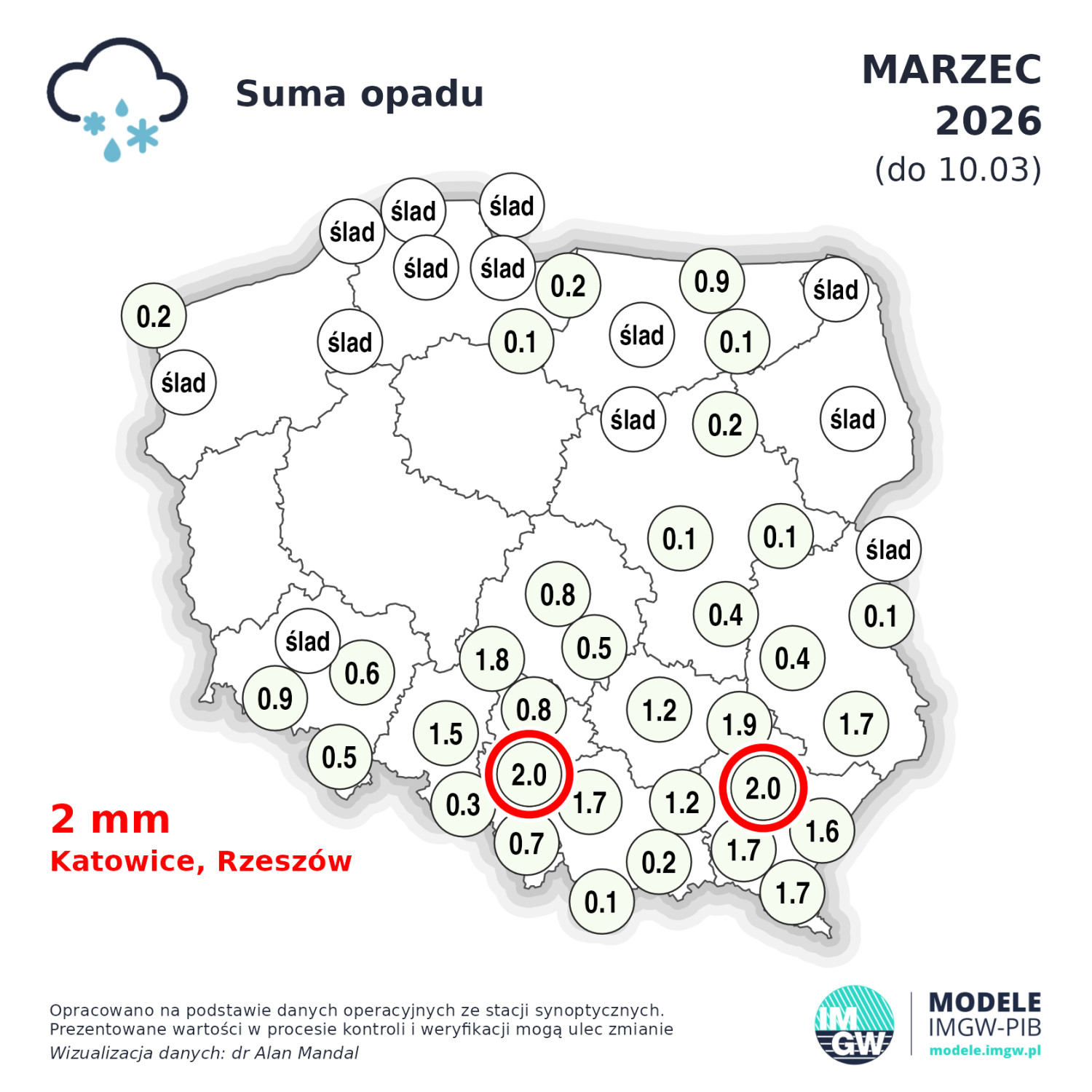 Na razie (do 10 dnia) marzec jest miesiącem bardzo suchym - w połowie kraju opady były symboliczne, a w drugiej połowie w ogóle nie padało. Jest to niekorzystna sytuacja, zwłaszcza w tych regionach gdzie zima była sucha.